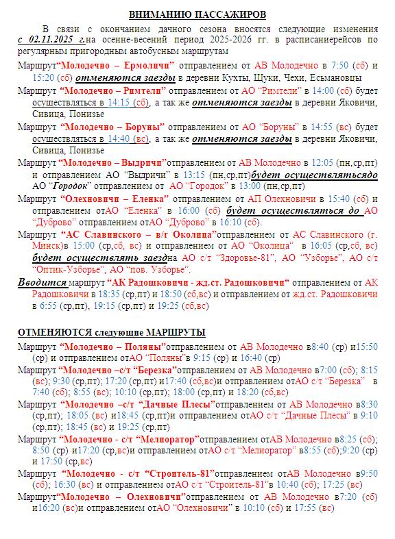 Отмена сезонных маршрутов